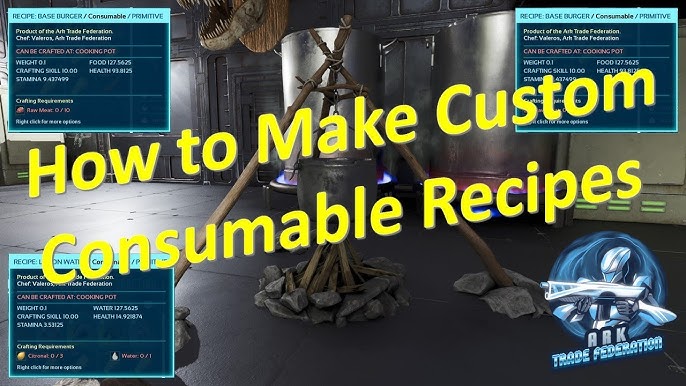 Ark Custom Recipe Stats Hack Guide 800 Health 800 Stam 300 Water 300 Food Youtube
